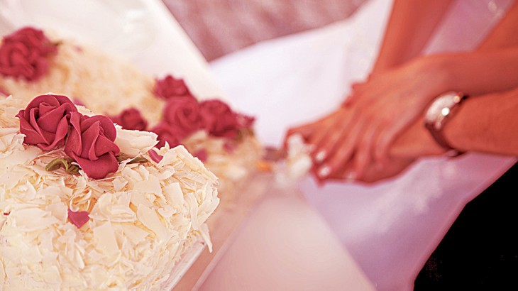 Selbstverständlich findet dann auch das traditionelle Anschneiden der Hochzeitstorte statt.
